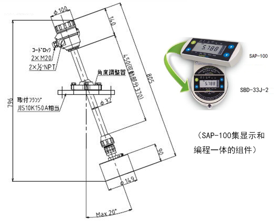 型號:SBD-33J-2超聲波料位計(傳送器帶顯示),進口超聲波料位計。