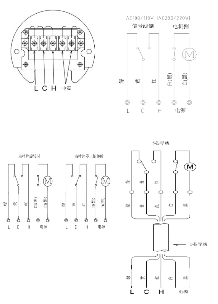 對于端子顏色編碼與5芯導線的顏色是一樣的,在端子接線時,注意接線正確。